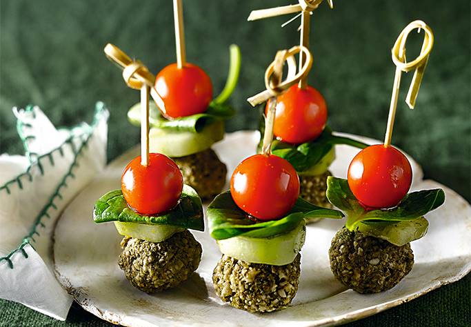 - Añade la mitad de las nueces y mezcla con cuchara de madera. Coloca los calabacines en un bol, báñalos con ella y decóralos con el resto de nueces.